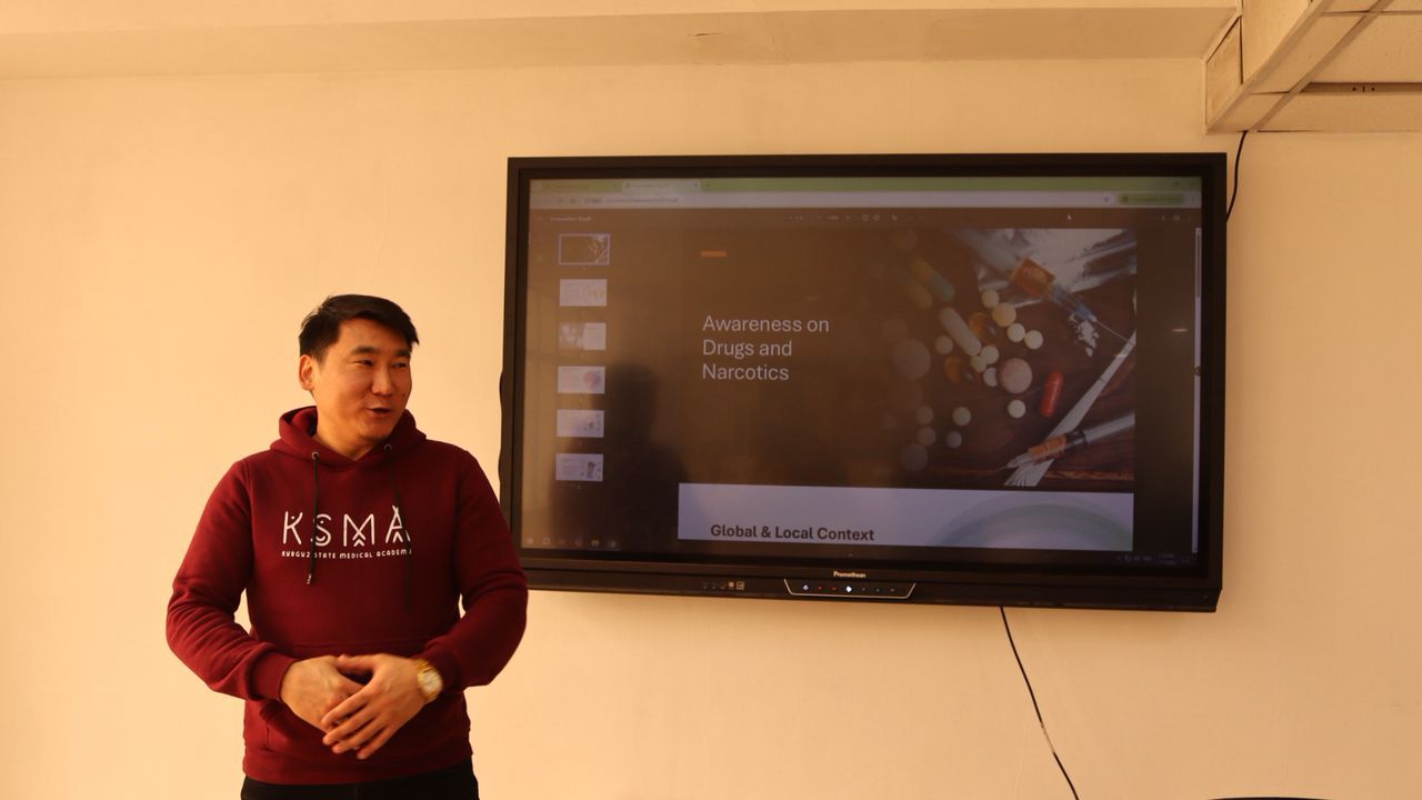 17-январь, 2026-жылы РМУ администрациясынын жетекчилиги астында баардык курстагы студенттерге баңги заттар жөнүндө кабардар болууну жана билим жогорулатуу боюнча жолугушу откорулду. Бул семинардын негизги максаты студенттерге баңгилик жана анын жеке жашоосуна жана окуудагы жетишкендиктерине терс таасири жөнүндө керектүү маалыматтарды берүү болгон. Ошондой эле баңги заттарды жана психотроптук заттарды колдонууну алдын алуу жана көзөмөлдөө боюнча сунуштар берилди. Ошондой эле программада студенттер катышып, баңги заттарды колдонуунун зыяндыгы жонундо презентация түрүндө маалымат берилди.